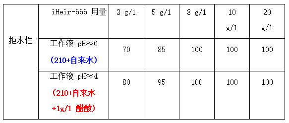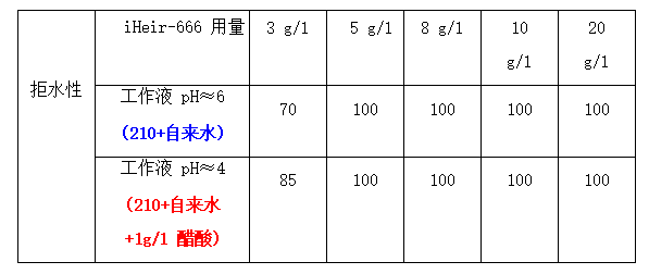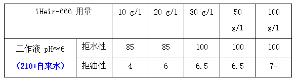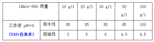 5、生產(chǎn)適用性廣:iHeir-666 的拒水、拒油性能對(duì)工作液 pH 值不敏感;